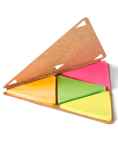 Bloco de notas adesivas personalizado em formato triangular e diferente de todos outros. Ainda mais possui uma area de personalização ideal para sua logomarca.