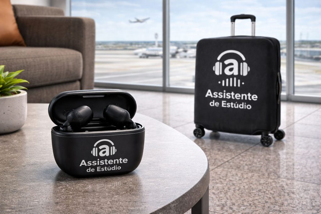 Itens como capas de mala personalizadas e fones de ouvido personalizados são exemplos de presentes úteis que combinam com a rotina dinâmica desse profissional.