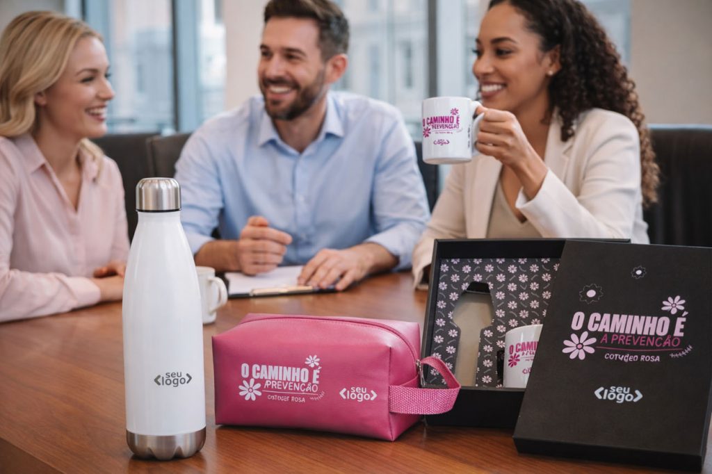 Os brindes personalizados desempenham um bom papel ao mostrar apoio ao movimento Outubro Rosa e ajudar a arrecadar fundos para pesquisas e tratamentos.