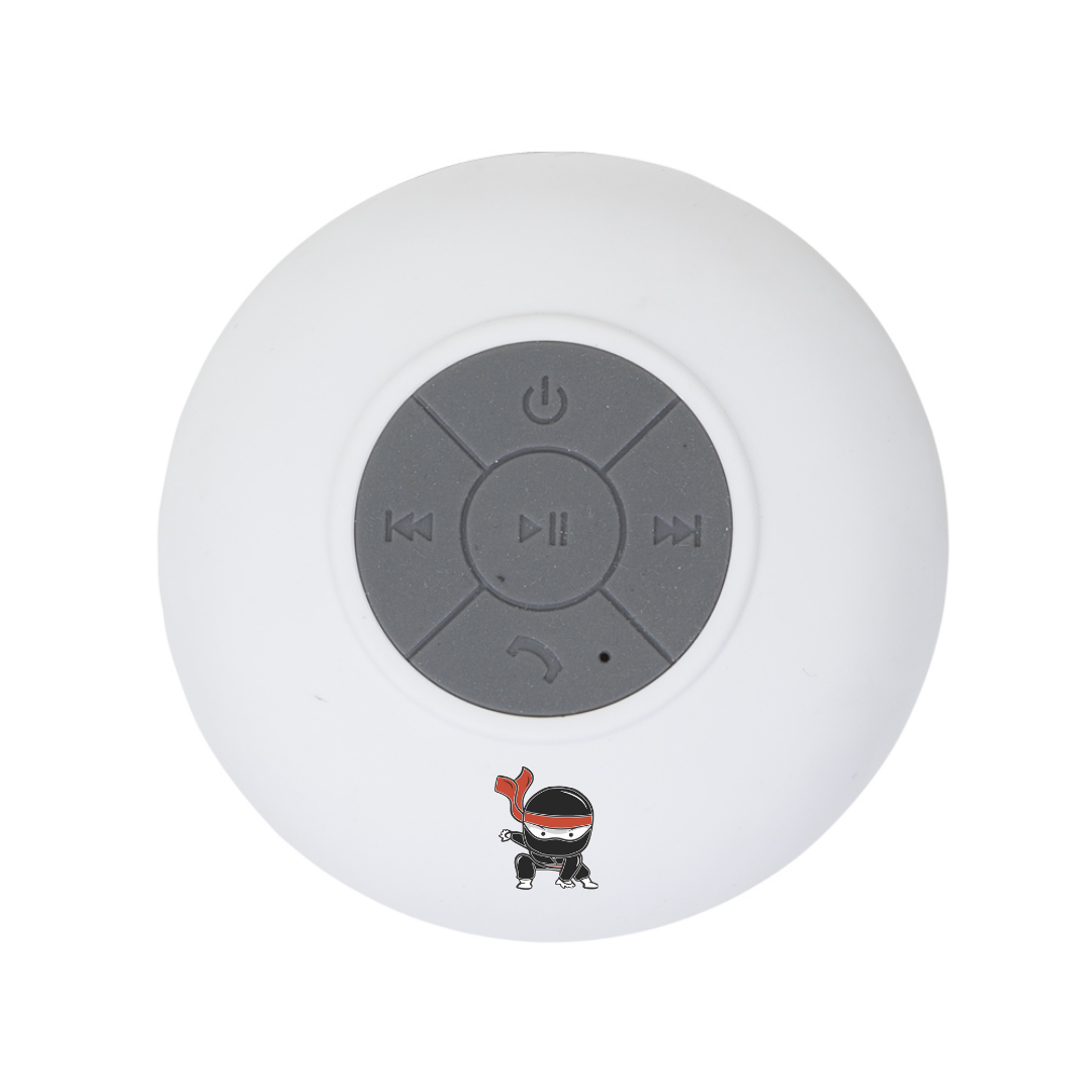 Caixa de som bluetooth emborrachada com ventosa(pode ser removida). Versão do bluetooth 3. 0/EDR, alcance de 10 metros, auto falante de 45MM, frequência 2.4G Hz, fonte de energia DC5V/100-120 mA, bateria lithium 3.7V 400mAh, carga necessária de aproximadamente 2 horas e dura cerca de 5 horas ligadas.