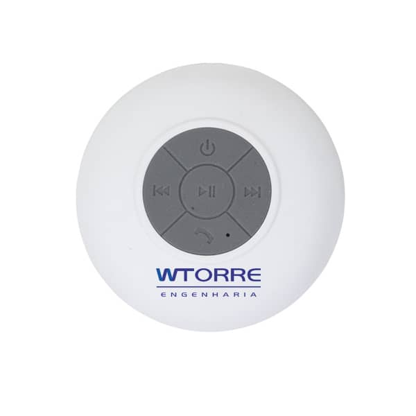 Caixa de som bluetooth emborrachada com ventosa(pode ser removida). Versão do bluetooth 3. 0/EDR, alcance de 10 metros, alto-falante de 45MM, frequência 2.4G Hz, fonte de energia DC5V/100-120 mA, bateria lithium 3.7V 400mAh, carga necessária de aproximadamente 2 horas e dura cerca de 5 horas ligadas.