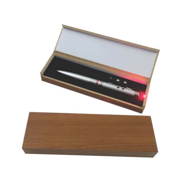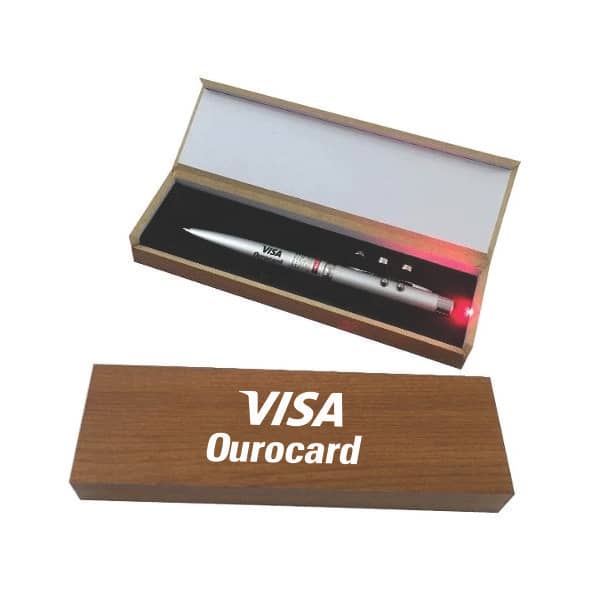 Caneta Esferográfica Lanterna e Laser Estojo Caixa Madeira