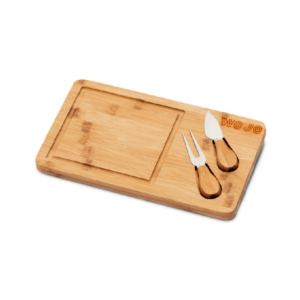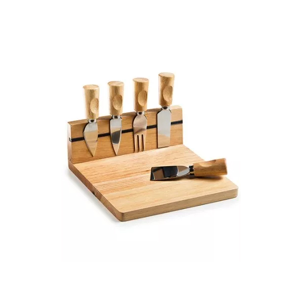 Conjunto para Queijo Personalizado, perfeito espaço para promover a sua logomarca. Contendo cinco peças, ele é composto por tábua, garfinho, duas espátula e dua facas. É certamente o brinde ideal para clientes e colaboradores.