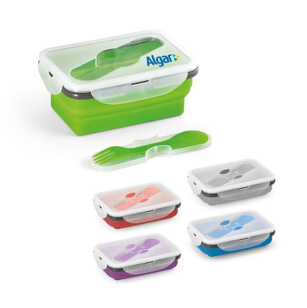 Marmita Retrátil Silicone, resistente e super prática, possui dois compartimentos para organizar as porções de alimentos conforme a sua necessidade. O menor espaço possui capacidade para 425ml e o maior 700ml. Por ser retrátil, a marmita ocupa pouco espaço na hora de guardar. Pode ser levada ao micro-ondas, exceto a tampa, para que você desfrute de sua comida sempre quentinha e saborosa. Acompanha um garfo e uma colher dobráveis que vem acoplados à tampa, além de um espaço que serve para acomodar seu tempero favorito.