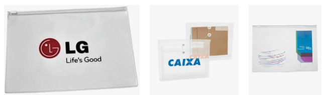 Pasta de PVC Personalizada, com prático fecho em aba e botão, é ideal para ser distribuída como brinde em ações promocionais durante feiras, congressos ou eventos corporativos. Com ótimo espaço para inserção de logo customizado, além disso, conta com baixo custo, excelente apelo popular e é fabricada em PVC transparente e resistente.