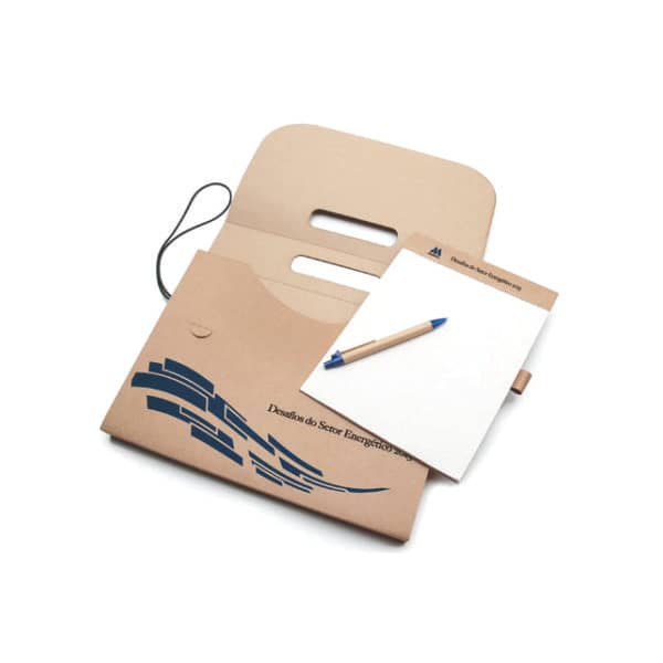 A Pasta Evento com Bloco e Caneta Personalizada é uma das melhores por conta de sua qualidade e pelo fato dela ser uma boa opção para fazer anotações sobre o evento.